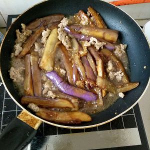 肉到锅里一起煮,加一点白糖,放一点水煮,完成!