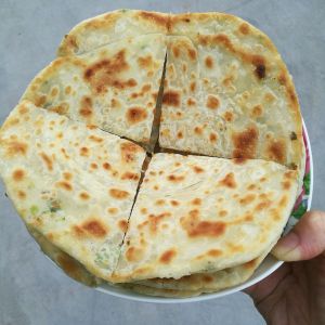 面皮上均匀抹满葱花,从一端卷起,然后像小蛇