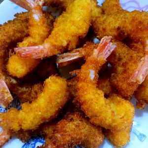 油锅加热,放入裹好面包糠的凤尾虾,记得翻转,炸到酥脆焦黄即可。