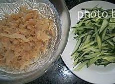 海蜇提前泡好,因为腌制时间久了好咸的,