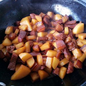 加水,生姜,盐,花椒,小火四十分钟,加土豆,小火至土豆熟,出锅,OK