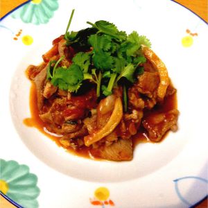 酱料炒好后,倒入腌制好的肉翻炒。加入鲜柠檬汁和盐调味。出锅,撒上香菜沫。