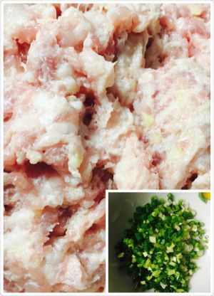 猪肉洗净剁成泥,葱切葱花、姜切末。