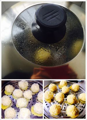 蒸笼水烧开,蒸格上垫放藕片或土豆片,将做好的丸子依次放在藕片上,大火蒸制15一20分钟。