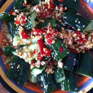 倒掉腌黄瓜出的水,倒入调好的料,拌好就ok
