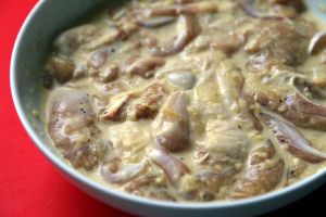 用料酒,姜泥,蒜蓉,盐和黑胡椒腌制鸡肉半小时以上