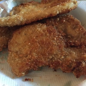 一直小火煎,为了省油,油没过鸡排一半就可以了,煎至金黄即可,如果不确定熟没熟可以把筷子插进去看一下熟了没。