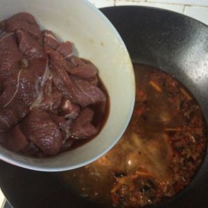 将腌制好的牛肉放入锅里煮3分钟左右。