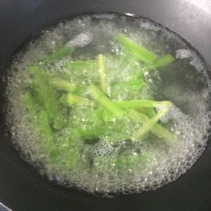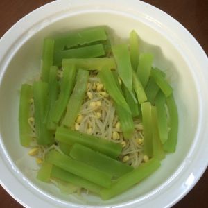 将豆芽,莴笋洗净,切好,并用水煮熟。