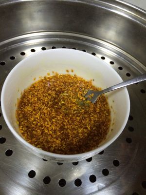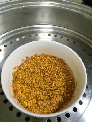 中途拿勺子搅拌一下,以便使麦芽糖和桂花充分混合。