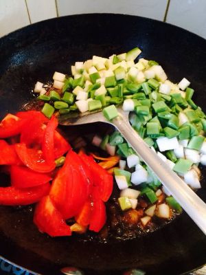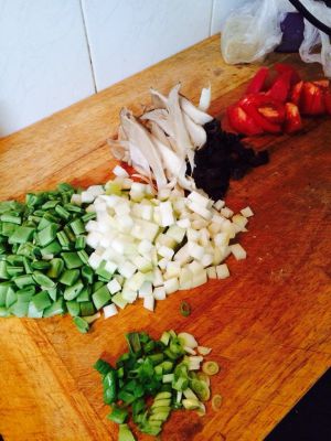 各料切丁切块儿。原谅我,此时干羊肉已经下锅,忘拍照了。