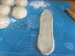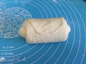 擀开呈现长椭圆形,注意将上面的边缘压薄薄的,这样卷起来的时候面团好贴合