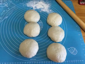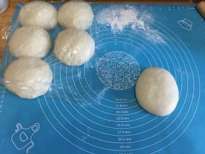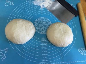30分钟后,将面团排气,之后揉圆平均分成2份