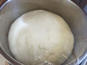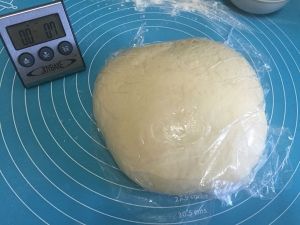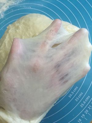 如果不太好,就在案板上在摔打揉搓一下,到出现手套膜即可