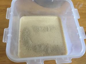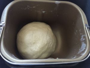 然后启动和面功能,这一步只需要简单地把材料混合均匀就可以了,移入盆中准备进行发酵