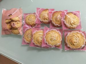 烤好冷却后可以装袋啦!刚烤好还有点软,冷却后嘎嘣脆