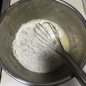 搅拌如图无白色干面粉,然后用搅拌棒送入裱花袋