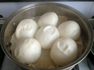 醒发好的样子。冷水上锅,小火开始,上汽后蒸15/20分钟。(我只做了一层,如果是两层,三层,建议根据情况加时间)