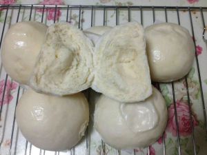 注意!注意!不要关火!顶着热气把馒头取出,小心烫,然后关火。