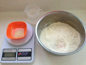 浸泡好的酵母水放入盆中,加入准备好的面粉,揉吧!呈现这个状态即可。