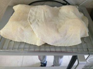 面团发酵至基本满盆,拉开面团里面像蜂巢一样。
