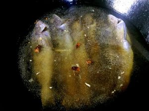 用刀在鱼身上斜片几刀,这样鱼炖的时候更容易入味