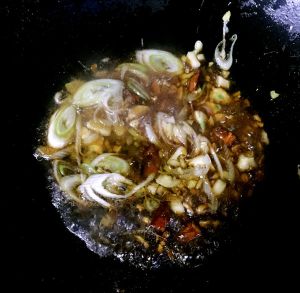 再放入糖、一品鲜酱油和料酒煸香,火不要太大,那样会糊锅