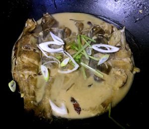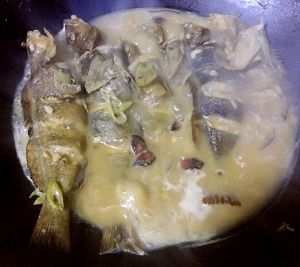 调料煸香入味后锅中加入适量的清水再将鱼放入水中开始炖鱼喽