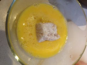 再将其放入蛋液 粘满蛋液