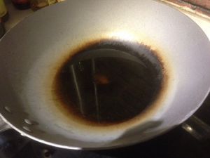 锅中倒油 略多一些 或不要太大 7成即可 待油稍稍冒烟即可