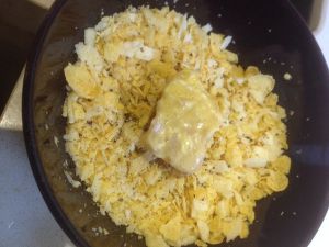 在放入芝士玉米片碎混合物中 粘满碎碎