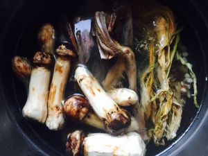 加入其他汤料,重新加入热水。煮开后,转小火煮1个小时,加入半勺盐。即可盛出。