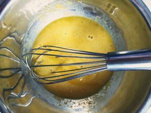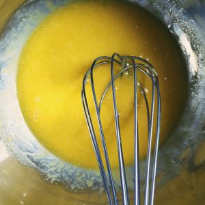 蛋黄加糖搅拌均匀
