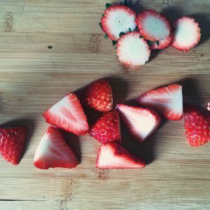 草莓去蒂切成两半