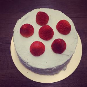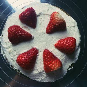 抹面,放草莓装饰,忽视打过头的奶油吧,汗,只能安慰自己不要紧,自己吃的不嫌弃哈哈
