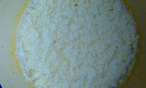 1.首先将蛋清和蛋黄分离,只取蛋黄,加三勺糖,打至浮起白泡。