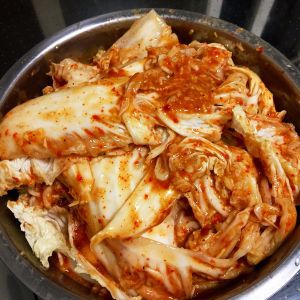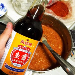 白菜腌好后,捞出来挤干水分,均匀的给每一片叶子抹上调好的浆汁。