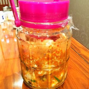 叶子一片一片的卷好用小葱捆住,放进密封罐里,放入冰箱等待一周。