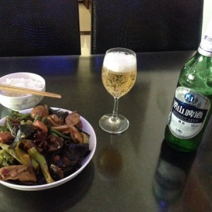香喷喷的麻辣香锅上桌了!(这样的深盘可以盛四盘子的量,四个大人足够美餐一顿啦,哈哈哈)