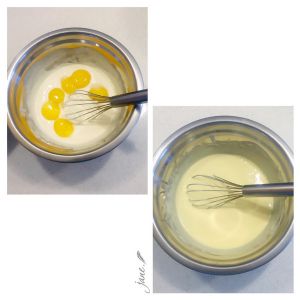 分离蛋黄蛋清,蛋清必须是无油无水的干净的盆,蛋黄加入奶糊,继续搅拌成均匀细滑