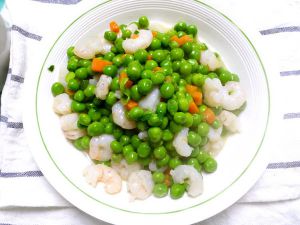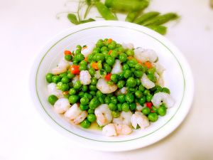 一盘碧绿青翠、清清爽爽的豌豆虾仁就OK了!