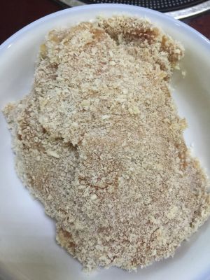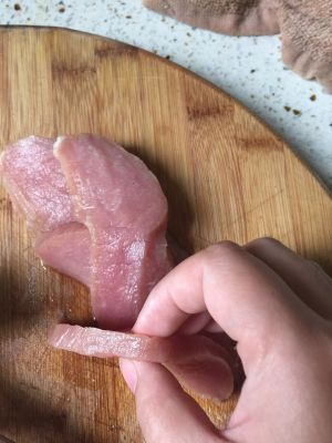用肉锤将肉的两面锤松(没有肉锤的用刀背)