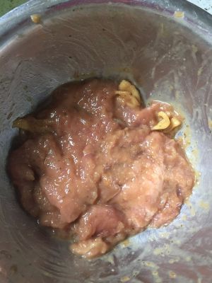 放入除面包糠外的所有调料用手抓匀,腌制两小时
