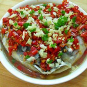 锅'里加适量水,大火上气后,放入鱼头,蒸约十五分钟,看鱼眼鼓起突出即熟,关火后再焖二分钟,