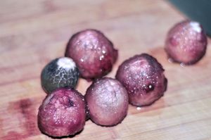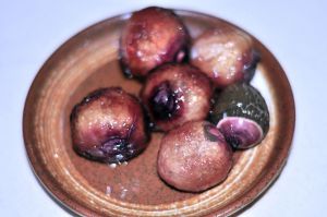 竹荪蛋去掉外皮,改刀,在顶部对切2刀。(竹荪蛋的蛋皮也是可以吃的,口感就如黑木耳,我觉得泥土腥味太大,所以去掉了)