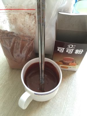 混合可可粉胡倒入模具,填满胖指头就可以了,,然后冰箱里冻15分钟左右。
