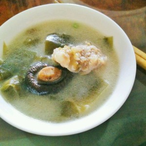 高压锅内放入水,沸腾后将排骨,海带香菇依次倒入