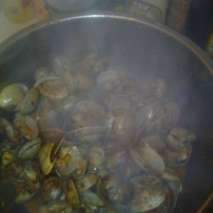 锅里热油,放红九九,放花蛤爆炒,,出锅喽