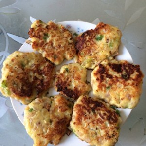 平底锅放少许油,用勺子舀一勺放入锅中,勺子压平,煎至金黄,借助筷子翻面,煎金黄另一面,出锅!超香!更适合不爱吃蔬菜的宝宝哦!蔬菜可自己选择!