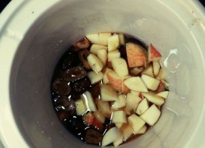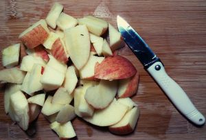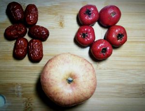 等红枣山楂煮开,闻到浓浓香味的时候,就可以切苹果了